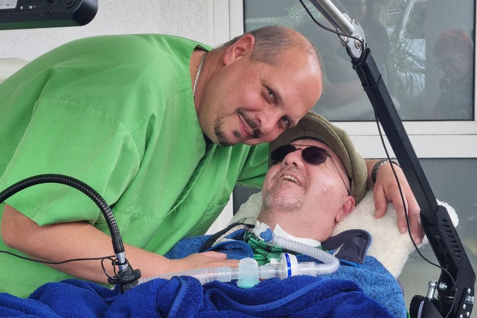 Sandro ist an ALS erkrankt und benötigt außerklinische Intensivpflege. Mit regelmäßigen Therapien und einen Sprachcomputer kann er sich heute wieder selbstständig artikulieren. In unserem Video erzählen Sandro und seine Lebensgefährtin Nicole seine Geschichte.